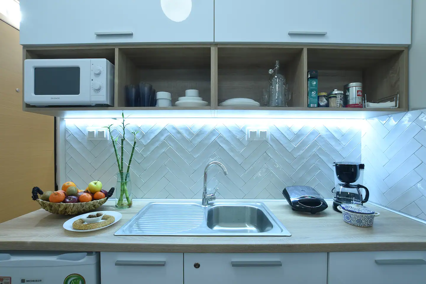 Θέλουμε να διασφαλίσουμε ότι αισθάνεστε σαν στο σπίτι σας, γι ‘αυτό προσφέρουμε την καλύτερη δυνατή εξυπηρέτηση.Μπορείτε να χρησιμοποιήσετε τη μικρή κουζίνα που υπάρχει σε κάθε δωμάτιο.​